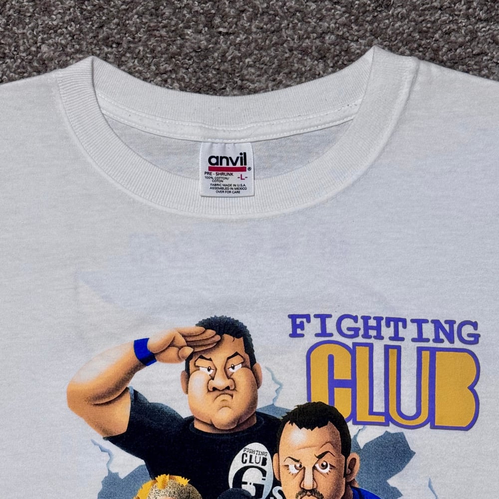 2000 NJPW FIGHTING CLUB G-EGGS SHIRT 🥚🪽 vintage white Anvil tagged front and back graphic print tee with purple puff additive (which you can feel) designed by Nagatoshi Sakai featuring Yuji Nagata, Brian Johnston (UFC vet), Manabu Nakanishi, and Yutaka Yoshie 📏 size L; measurements: 21.75” x 29.5” 📝 pre-owned in very good condition with print crack on the back 🏷️ available shipped USPS 📩 DM with any questions